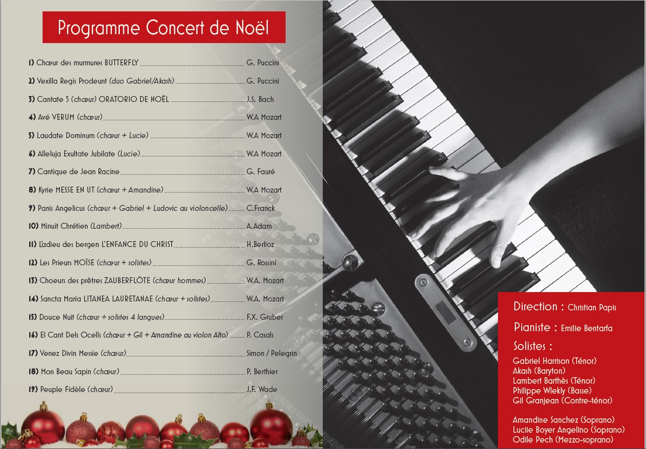 Seront au programme de ce concert prestigieux, des airs, duos, trios et quatuors extraits d’oeuvres sacrées intemporelles de grands compositeurs tels que Bach, Pergolèse, Mozart, Donizetti, Rossini, Verdi et Brahms.